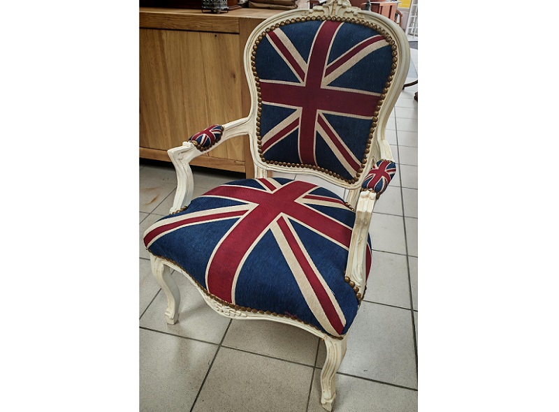 Kresielko Ludvik v krémovej farbe s poťahom v látke vlajka England, celkom 2ks skladom, cena za 1kus:140,-Euro