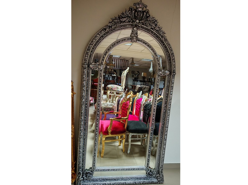 Celostrieborné veľké zrkadlo o výške 226cm x 115cm šírka, cena:680,-Euro