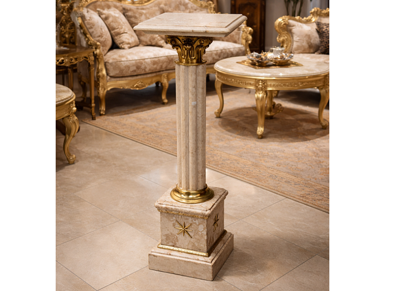 Mramorový stĺp s mosadznými doplnkami o rozmere: 27cm x 27cm vrchná časť x 105cm výška, cena: 390€