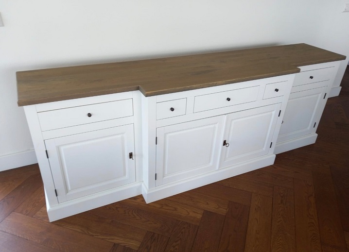Komoda o rozmere:225cm dĺžka x 52cm hĺbka x 89cm výška, vrchná doska celodub, cena:350,-Euro