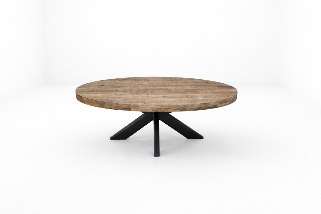 Stolík oválny k sedačke z mangovou vrchnou doskou a kovovým podnožím o rozmere a cene: